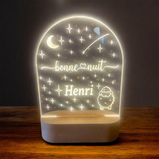 Personalized Kids Night Light | Wooden Base Lamp | Custom “Good Night” in English or French | Nursery Decor | Baby Gift | Color Changing