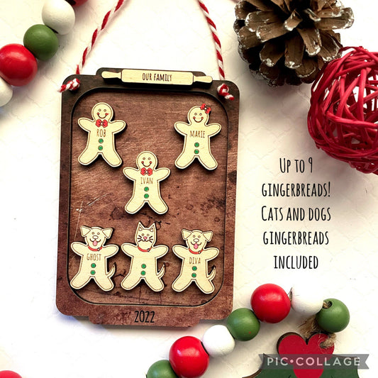 Personalized Gingerbread Family and Pets Wood Ornament/ Pet Lovers/ Dog puppy Christmas Tree decorations/ Cat kitties ornament