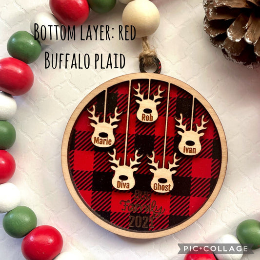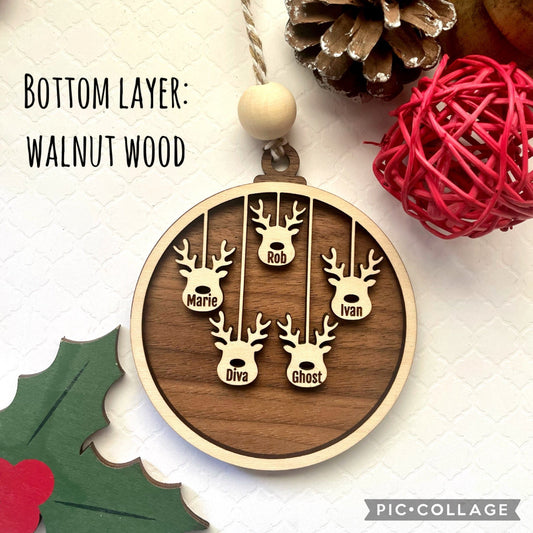 Personalized Ornament, Reindeer Engraved Ornament, Home Decor, Holiday decor, Family Wood Ornament, Pet Ornament, up to 10 people Ornament