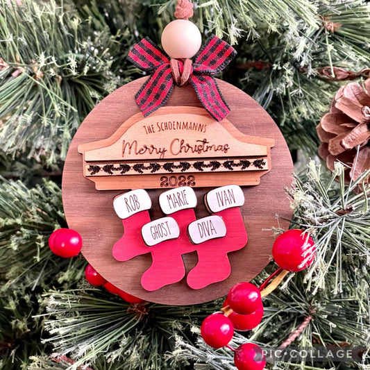 Personalized Gift, Custom Engraved Ornament, Home Decor, Holiday decor, Family Wood Ornament, Pet Ornament, up to 10 people