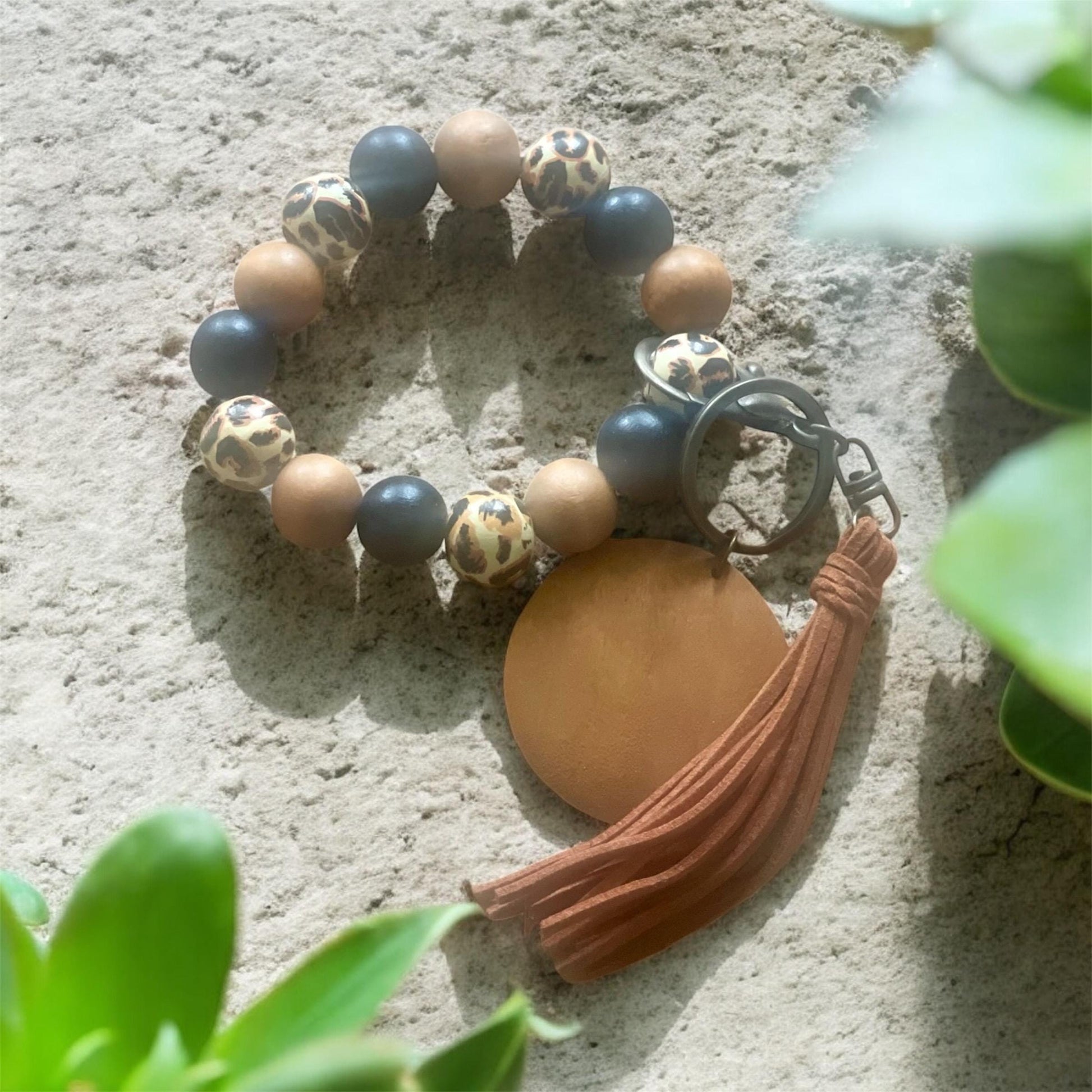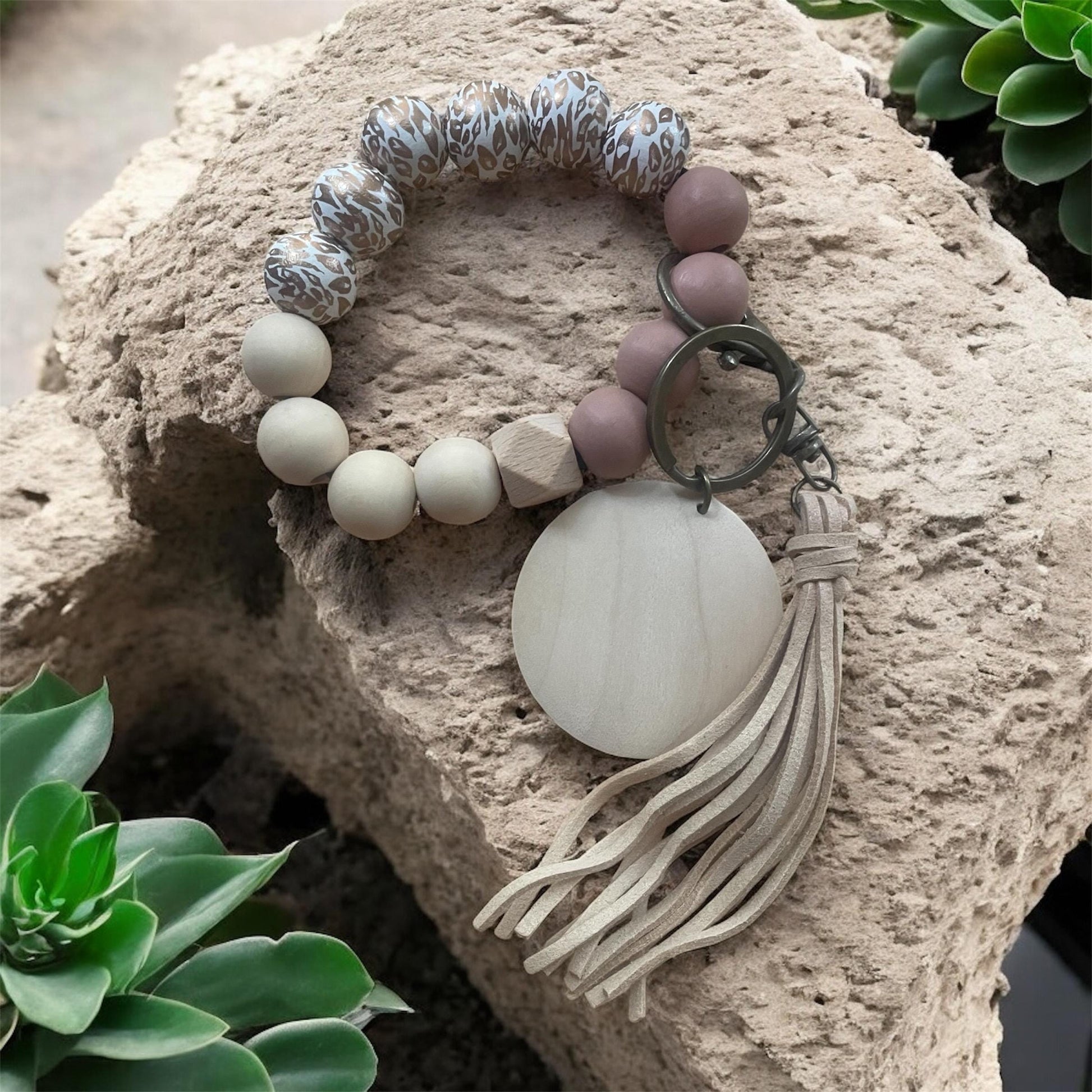 Personalized Wristlet Keychain – Leopard Print, Floral Design, Custom Wood Pendant