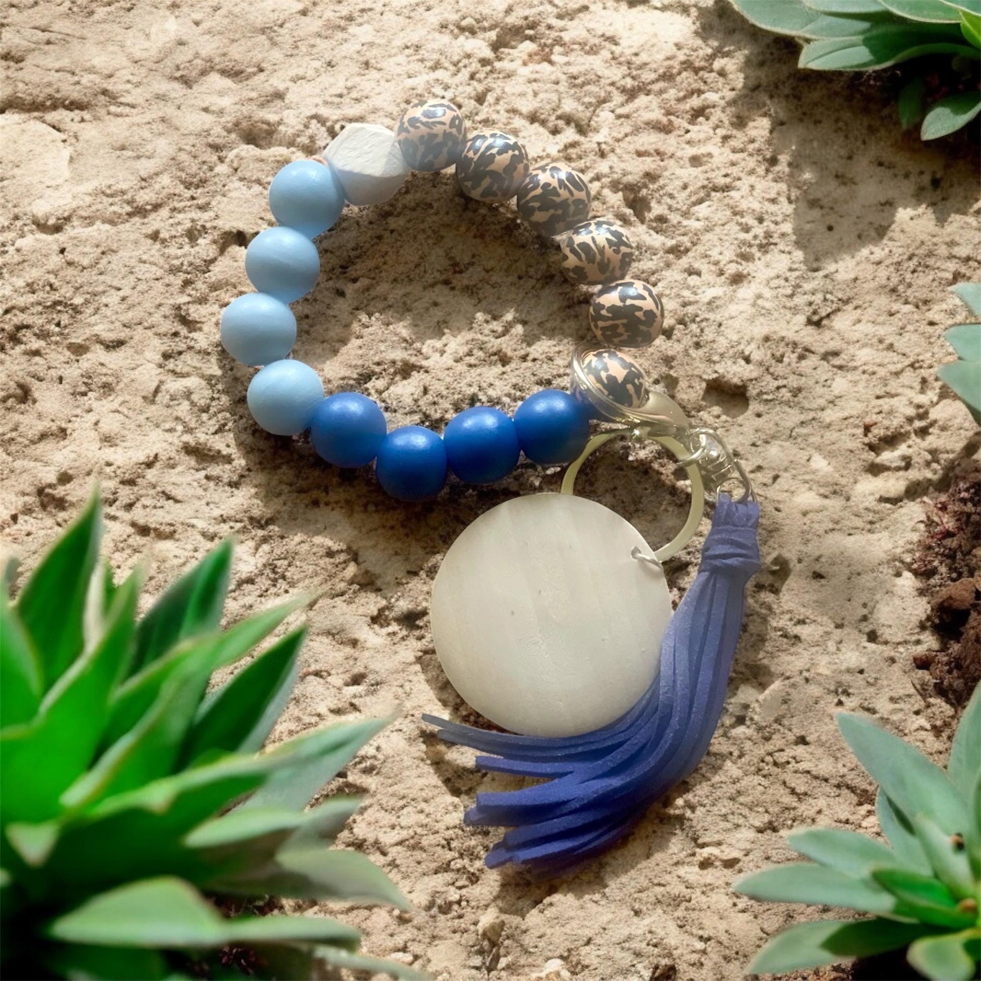 Personalized Wristlet Keychain, Engraved Keychain, Wood Bead Keychain, Bracelet Keychain, Gift for Her, Gift for Mom, Mama Keychain, Leopard