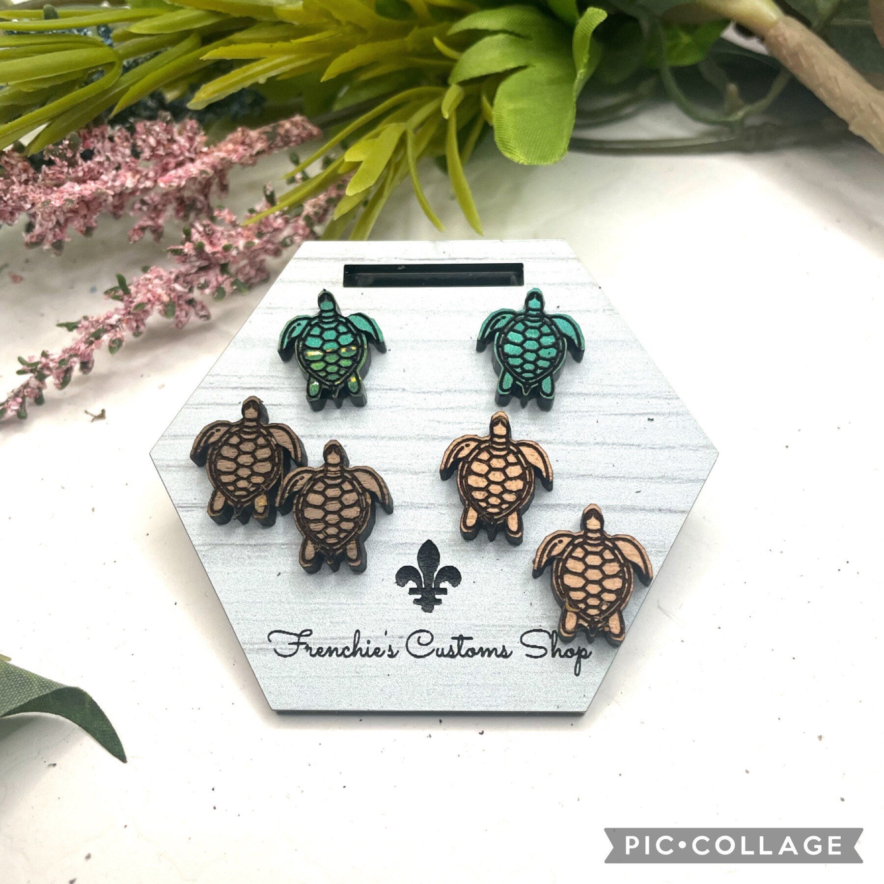 Wood Stud Earrings, Turtle Earrings, Summer stud earrings, Beach Earrings, Turtle Lover earrings, Sea Creature earrings, Turtle Lovers Gift, Gift for Mom.